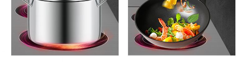 四頭柜式電磁爐,10檔調節,滿足各種烹飪。3500W火力十足,輕松選擇合適火力。同時工作互不干擾單獨磁爐控制面板,設置不同大小檔數,同時工作,互不干擾。
