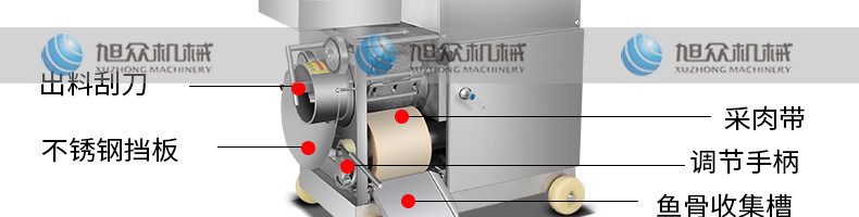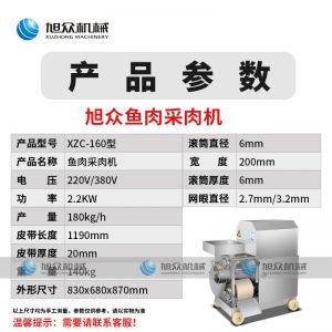 XZC-160型魚(yú)肉采肉機(jī),去刺干凈、高效出肉。加工魚(yú)肉去刺、蟹蝦去殼等。手工去魚(yú)刺太累了,傳統(tǒng)的魚(yú)糜加工中,手工去魚(yú)皮魚(yú)刺,既費(fèi)時(shí)又費(fèi)力不小心就會(huì)傷到手。
